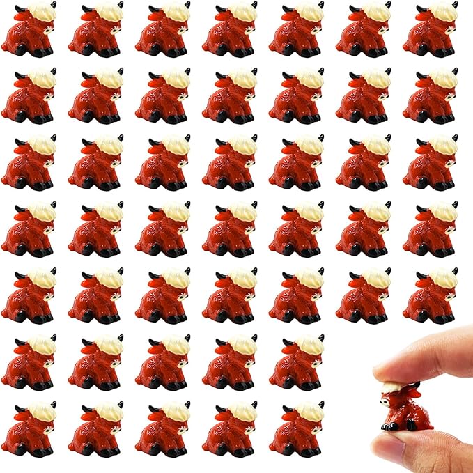 50 Pcs Mini Highland Cow Statues Highland Cow Decor Cute Highland Cow Figurine Handmade Resin Cow Sculpture Ornament for Decorations Home Kitchen Garden