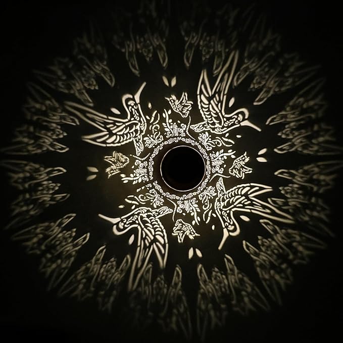 - 【Hummingbird Decoration】The solar outdoor lantern is inspired by animal elements in nature. It projects bright hummingbird patterns in the dark, creating a gorgeous and warm atmosphere and bringing vitality and fun to your garden. It adopts a gold-copper color and hollowed-out metal finish, presenting a retro look.