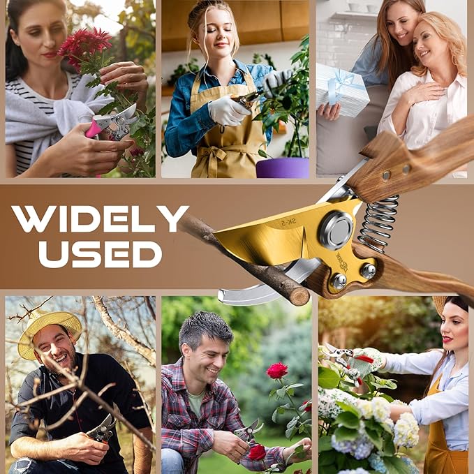 8.5" Professional Bypass Pruning Shears – Heavy Duty Garden Scissors & Clippers for Wood & Tree Trimming, Ultra Sharp SK5 Blade, Ergonomic Handle, Perfect Gardening Gift, 2025 Wood-Like Finish