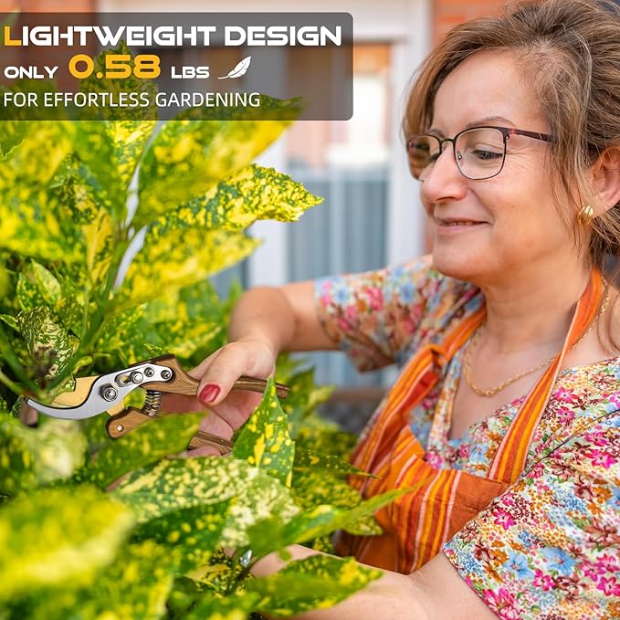 - POWERFUL LEVER CUTTING TECHNOLOGY: Garden shears feature an innovative lever cutting design that triples the cutting force, making it effortless to prune thicker branches. Perfect for branches up to 1 inch in diameter, the lever mechanism enhances cutting power through an optimized structure, allowing you to handle thick, wet, or dry wood with ease