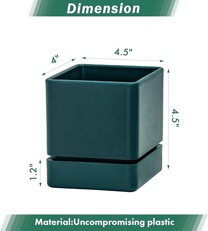 4 Inch Herb Planter Pot, Plastic Planter with Drainage Holes and Saucer, Modern Decorative Gardening Pot for Indoor Plants, Flowers, Herbs, Succulents, Green, Set of 2, 76-Y-C-2