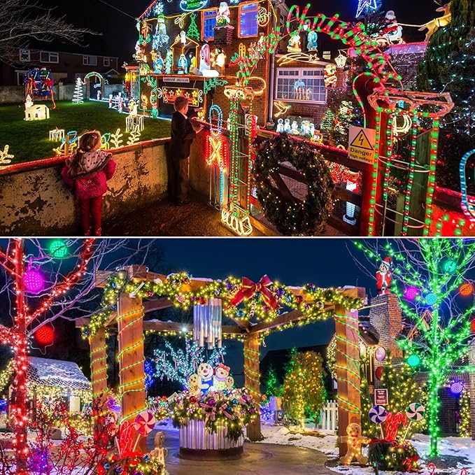 - IP 65 Waterproof Christmas lights : The outdoor rope lighting is covered with a transparent and thick round PVC tube that allows 360°full illuminating and is strong and heat-resistant. With waterproof IP65, it is suitable for indoor and outdoor Christmas decorations. (NOTE: The plug part is not waterproof)