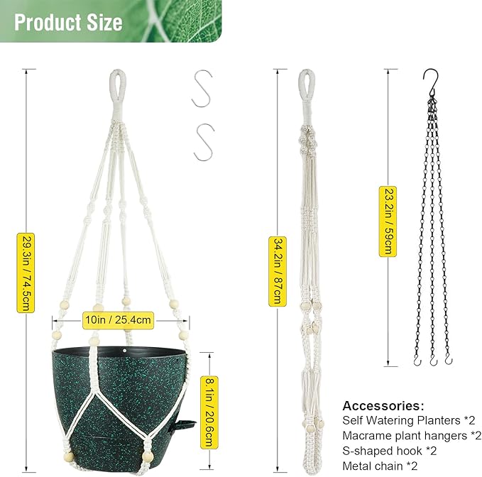 • 【Self-Watering Hanging Planter with Removable Tray】This hanging flower pot comes with a detachable bottom tray that acts as a water reservoir, holding a good amount of water. When your plant needs water, it’s absorbed through cotton wicks from the reservoir to the soil, reducing how often you need to water