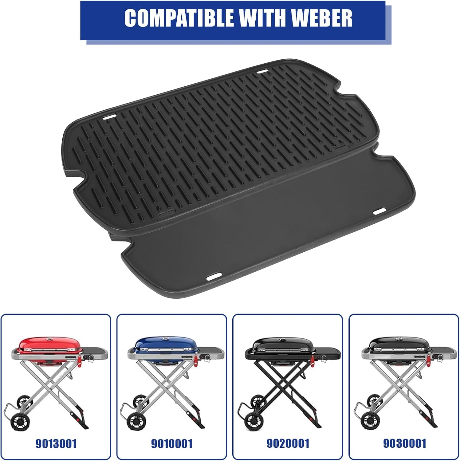 AJinTeby Cast Iron Griddle for Weber Traveler Portable Series Gas Grills Parts, Non-stick Griddle for Traveler Gas Grill, Camping Plate, for Weber Portable Grill Accessories with Carry Bag