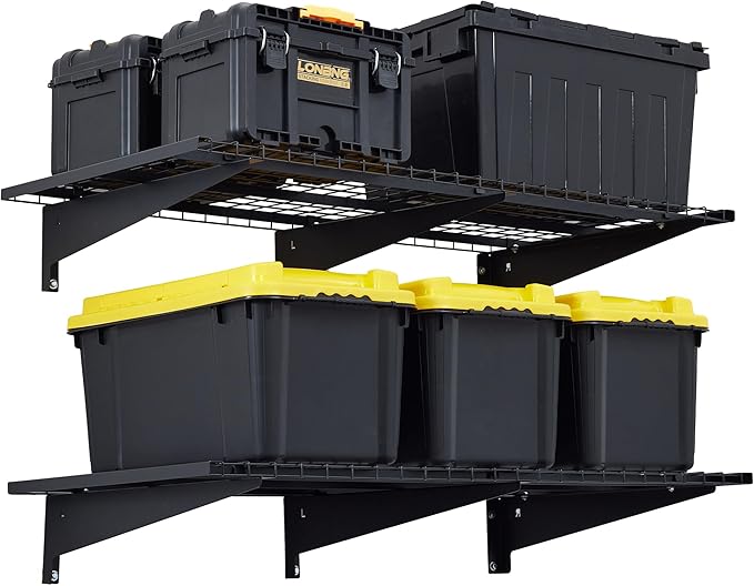 Garage Wall Shelving, 2-Pack 2 x 4ft Garage Storage Rack,Loads 700 lbs 24-inch-by-48-inch Heavy Duty Wall Shelves,24” x 48” Garage Wall Shelf,Black