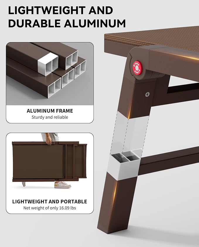Aluminum Chaise Lounge Chair Outdoor, Foldable Patio Lounge Chair Assemble-Free, Pool Lounge Chairs with 5 Adjustable Backrest, Outdoor Lounge Chairs for Outside Poolside Beach Lawn Brown