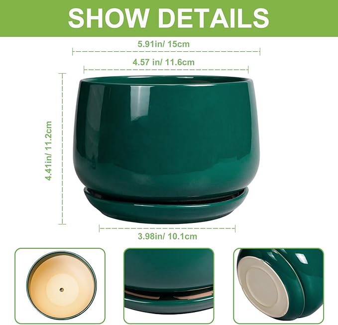 - Drainage Pots for Indoor Plants: The ceramic pots for plants have a drainage hole at the bottom and a matching plant pot saucers, which can collect excess water drainage and soil spillage, keep plant roots healthy. The planter includes a drainage mesh for better reduced soil loss