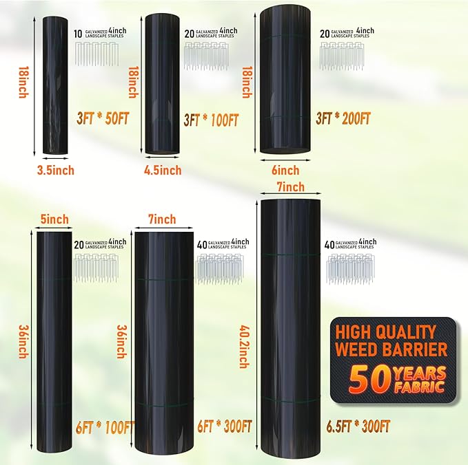 - Good Material Weed Barrier Fabric: Made of advanced high-density polypropylene woven fabric, our weed barrier landscape fabric is heavy duty and durable, easily cut to suit various needs,keeping your garden and flower beds free of weeds for a long time