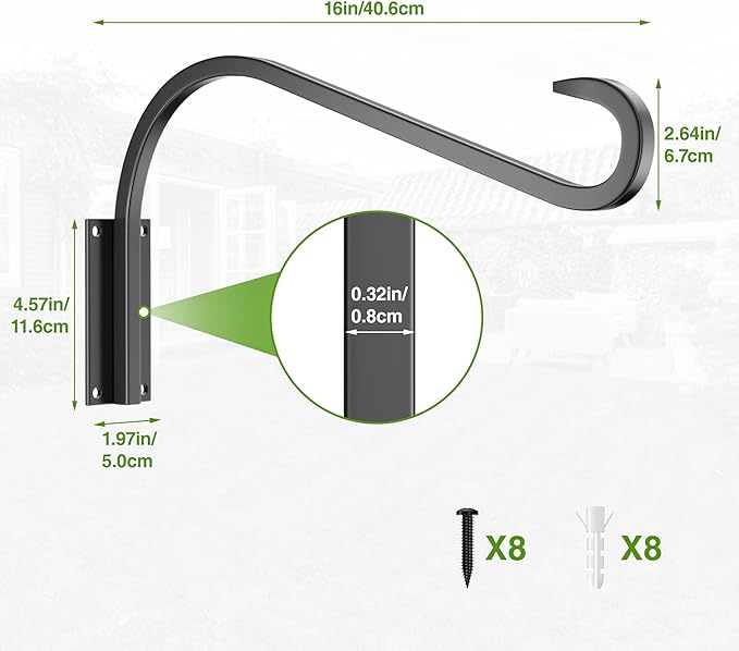 16 Inch 2 Pack Plant Hangers for Indoor/Outdoor Wall Mount - Heavy Duty Hanging Plant Holder & Bird Feeder Hooks, Decorative Black Metal Wall Hangers for Plants, Flower Baskets