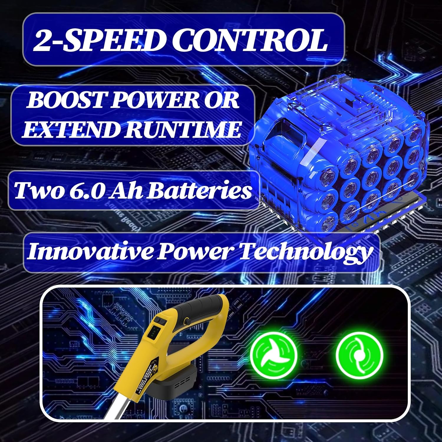 20000 RPM(6.0AhX2) Electric Weed Wacker,Dual-Durable-Line,Metal Blades,Wheel,4-in-1 Battery Powered Weed Eater Cordless+String Trimmer+Edger Lawn Tool+Brush Cutter,Weed Whacker