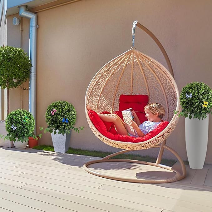 - 【90-Second Setup & Versatile Styling】 Pre-assembled structure with bendable vines and embedded ground spike allows instant installation in soil, pots, or rocky terrain. Rotate 360° to showcase fake butterfly ornaments from every angle – Our evergreen faux boxwood balls is perfect for photo-ready porch décor or events