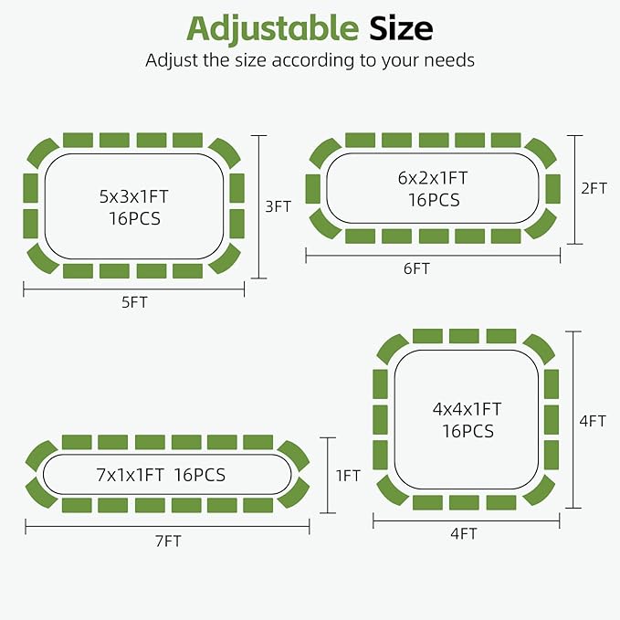 4-in-1 Modular Raised Garden Bed Kit - Adjustable Sizes (5x3x1ft, 4x4x1ft, 6x2x1ft, 7x1x1ft) - Heavy Duty Galvanized Steel Planter Box with Bracing Rods & Gloves for Vegetables, Fruits