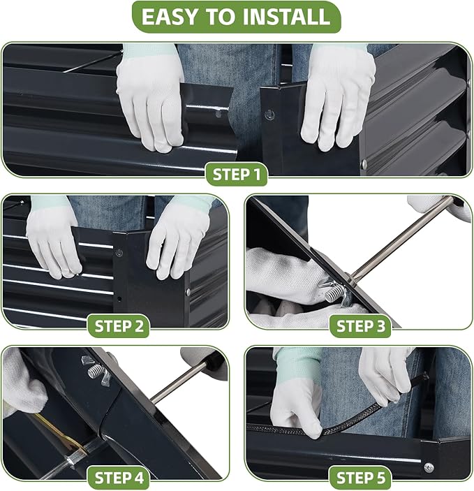 - 【 Fast Assembly 】 Metal raised bed unique wing nut design allows quick tool-free assembly in just 35 minutes. Raised bed garden planters compact interlocking panels save storage space and prevent soil leakage.