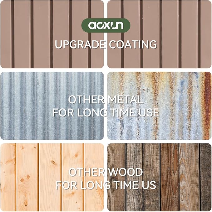 - Sturdy & Weather-Resistant Construction: Crafted with a robust frame and heavy-duty galvanized steel, this storage shed stands up to harsh weather conditions, ensuring a lengthy lifespan. Featuring a thick metal roof and reinforced wall panels, the shed offers exceptional stability. Wind Resistance: Up to Grade 6 (24-30 mph), Snow Load Capacity: Up to 6 inches