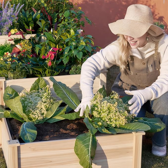 AMERLIFE 3-Tier Raised Garden Bed for Outdoor Gardening, Fir Wood Planter Box with Dividers, Tool-Free Assembly, Garden Box Perfect for Vegetables, Herbs, and Flowers