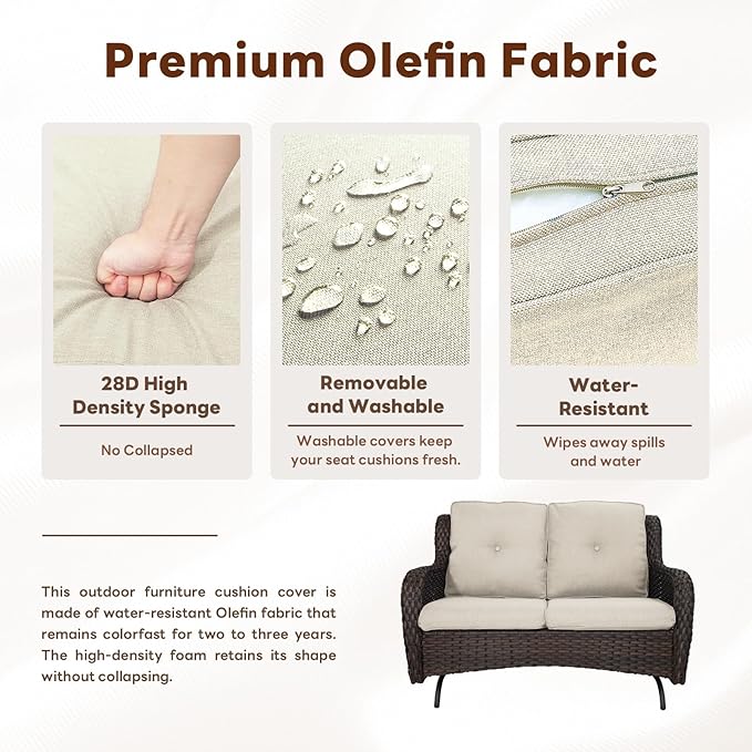 - Durable Handwoven Wicker & Steel Frame: Built to last, this outdoor furniture set is crafted with high-quality PE wicker and a rust-resistant steel frame. Whether you're relaxing on the loveseat glider or the swivel rocker chairs, the patio conversation set promises durability and weather resistance for long-term use.
