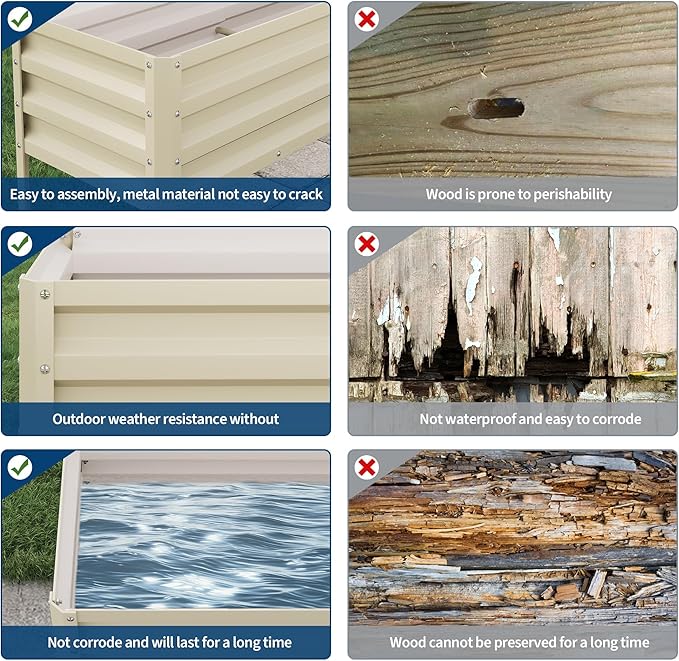 - 【Rust-Resistant Raised Beds】 Featuring a protective coating, these raised garden beds won’t rust, even in damp conditions. Enjoy a corrosion-free garden bed that stays functional and attractive for years.