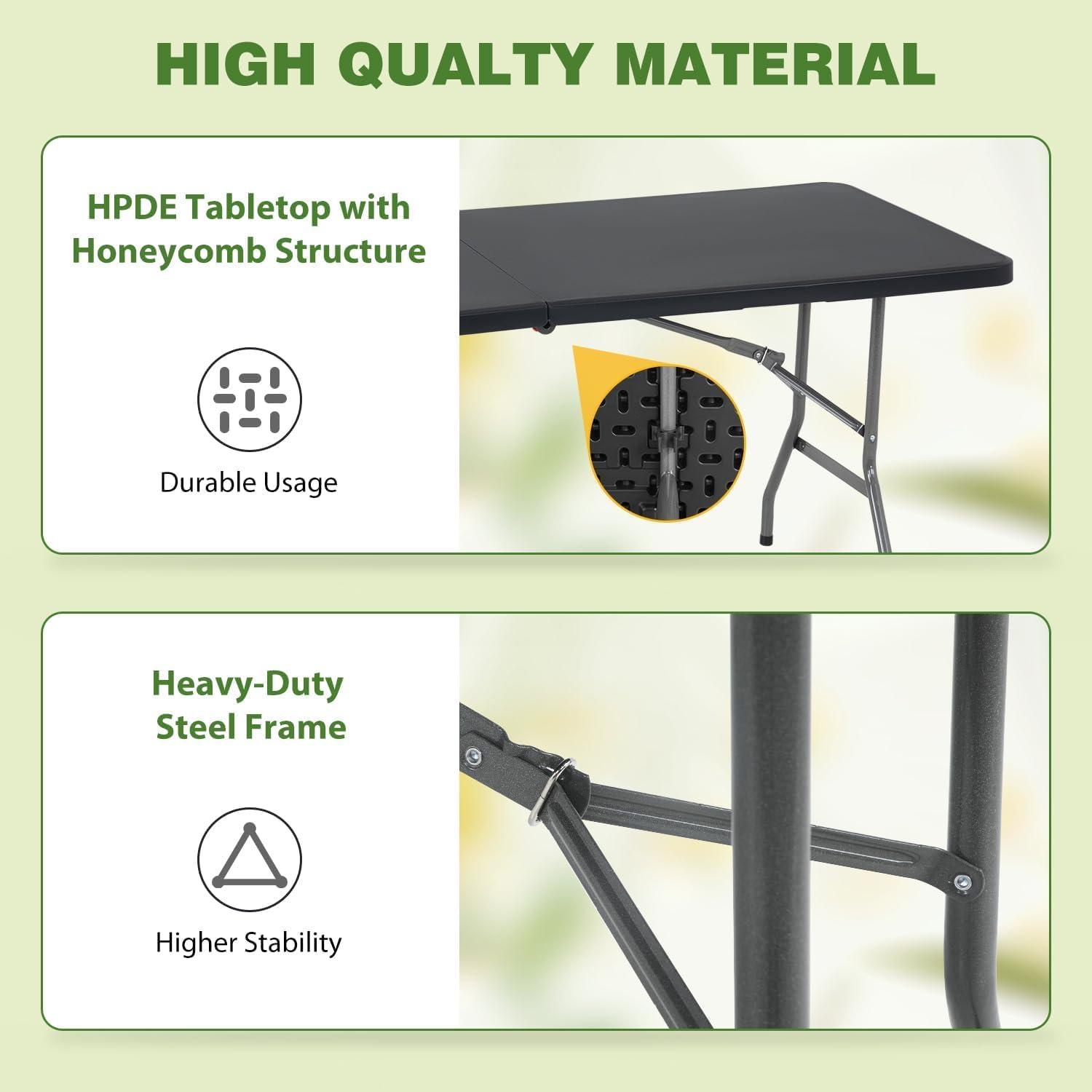 6FT Folding Table, Heavy Duty Plastic Table Portable Fold-in-Half Utility Table Indoor Outdoor Picnic Table w/Handle & Lock for Camping BBQ Party Wedding Market Events, Black