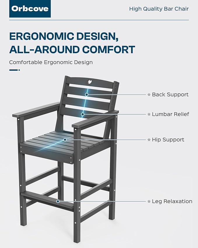 - Durable All-Weather Design: (Please note!!!Your order consists of two separate packages, which may be delivered at different times.) Crafted from HDPE with a natural wood grain finish, Orbcove bar table and chairs set withstands sun, rain, and wind without fading or cracking. Ideal for deck furniture, backyard furniture, or porch furniture, it’s perfect for year-round outdoor living.