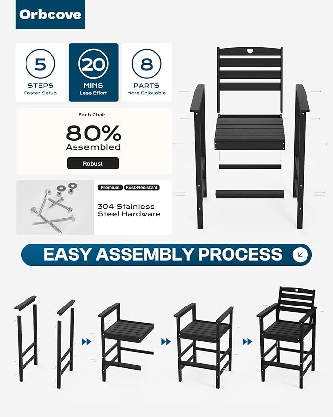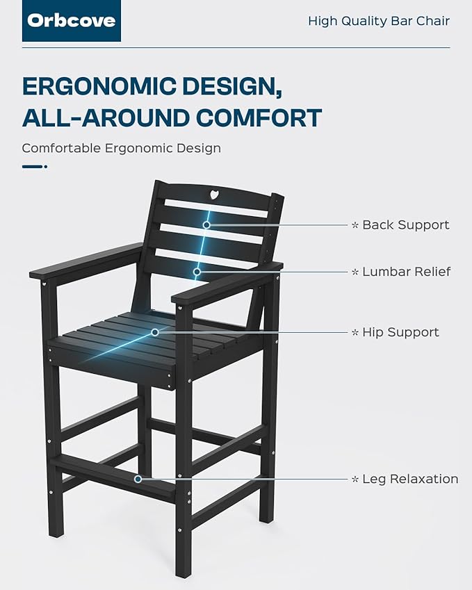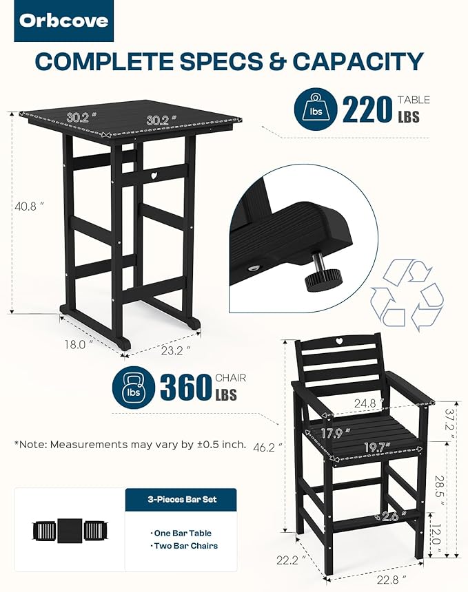 - Durable All-Weather Design: (Please note!!!Your order consists of two or three separate packages, which may be delivered at different times.) Crafted from HDPE with a natural wood grain finish, Orbcove bar table and chairs set withstands sun, rain, and wind without fading or cracking. Ideal for deck furniture, backyard furniture, or porch furniture, it’s perfect for year-round outdoor living.