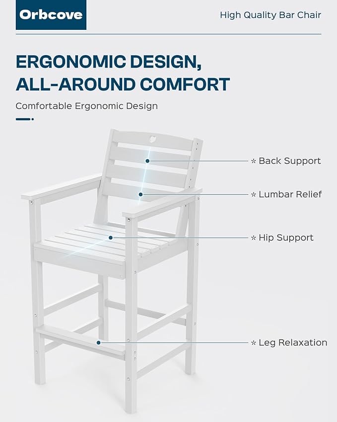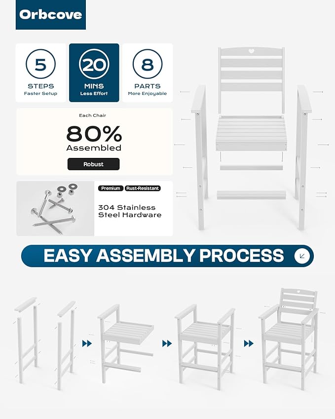 - Hassle-Free Assembly & Maintenance: Quick assembly with clear instructions and included hardware. The waterproof, fade-resistant surface ensures Orbcove outdoor bar table and chairs set requires minimal maintenance—just wipe it with soap and water patio bar set to keep it looking new.