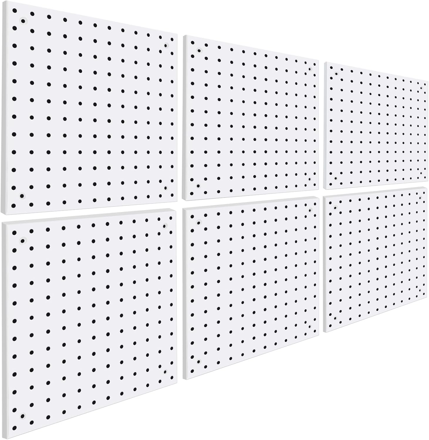 6 Pack Steel Peg Board,Universal 1/8 and 1/4 Pegboard Accessories,Ideal for Garage Tool Storage, Office Organization, Craft Room, Kitchen etc. (White, 6-12X12)