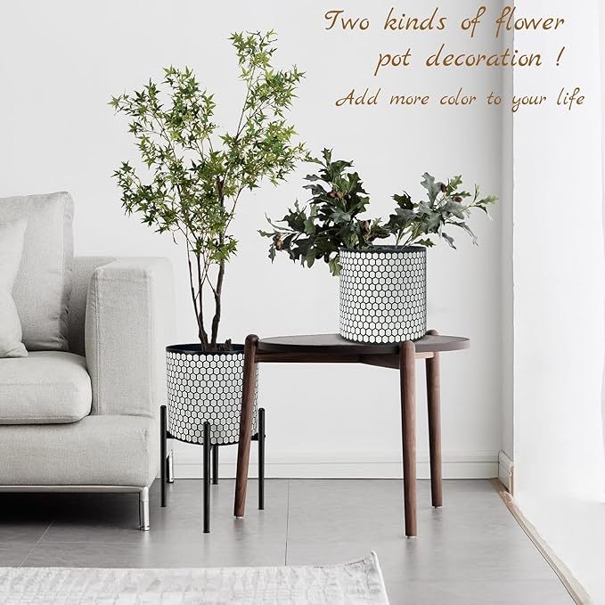 12 Inch Flower Pot Without Bracket with Drainage Holes Suitable for Indoor and Outdoor Decorative Planting (Black White Hexagon, 12 Inches)