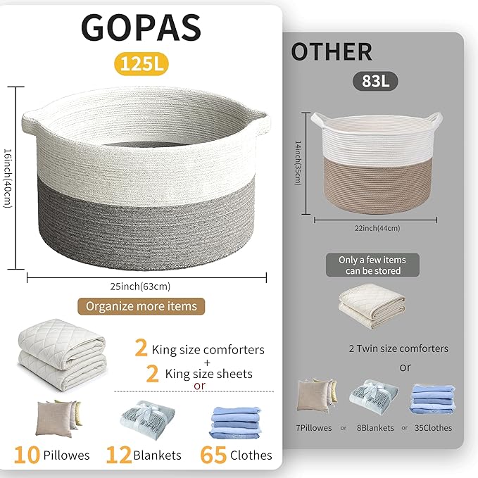 - Extra large Size Multi-Purpose Blankets Basket: 25" x 16", Our Large woven rope basket for storage originally designed as a Blanket storage basket but can be used for more. You can use it as large laundry basket, large storage basket, toy basket for kids, baby toy storage basket bin.Keep in the kids room, family room, or any room in the house that could use extra storage