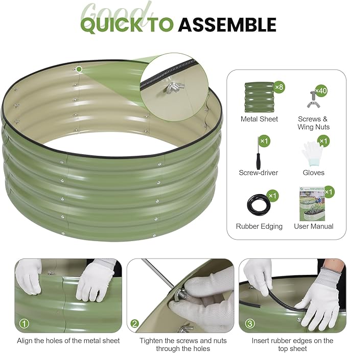 - 【Safe Edge & Rubber Trim】 The planter raised beds features a rolled top edge with a rubber strip to prevent injuries during setup and gardening. This thoughtful design enhances safety, especially for families with children and pets.