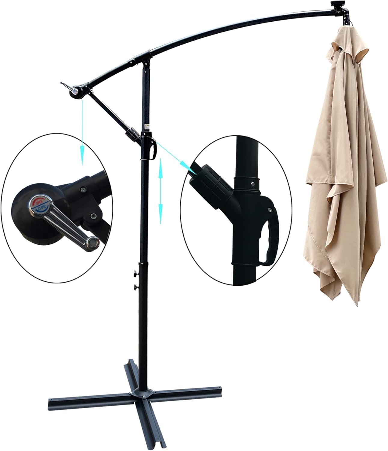 - âś… HIGH DURABILITY: Crafted from 180G polyester fabric, this 10x6.5ft offset patio umbrella ensures fade resistance, waterproofing, UV protection, and easy cleaning. The 1.9" diameter rust-resistant pole, 6 sturdy steel ribs and cross base, with a powder-coated finish, can withstand winds up to 20 mph. The vented top design increases stability and keeps the area cool, making this cantilever umbrella ideal for long-term outdoor use.