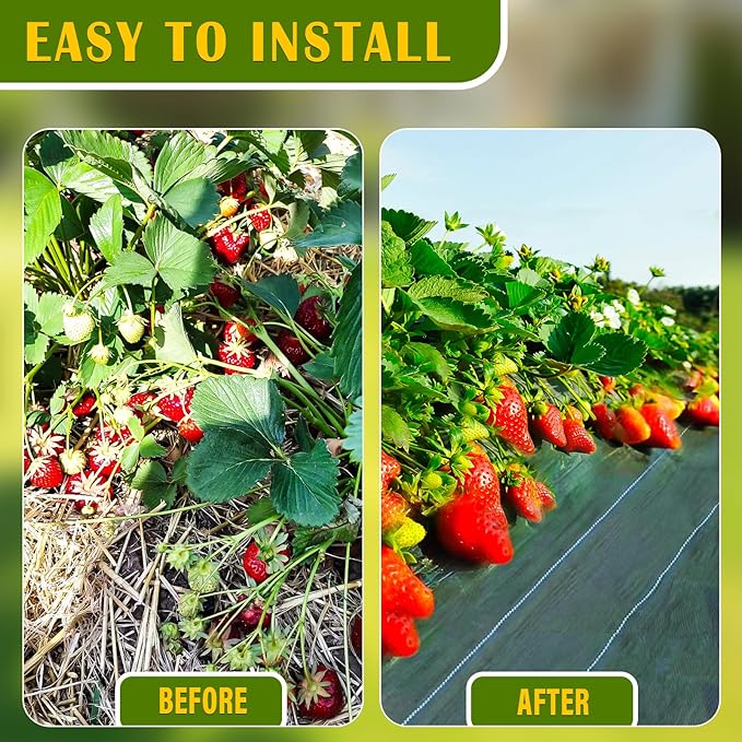 - High-Quality Garden Weed Barrier Fabric:This garden weed barrier fabric is made of high-density, 3.2OZ woven professional-grade polypropylene. Garden cloth weed barrier is tear-proof, easy to cut, and degradable. Our garden weed barrier is highly permeable and breathable, ensuring irrigation effect. Garden weed control fabric help your plants grow faster, making your gardening life easier and more efficient