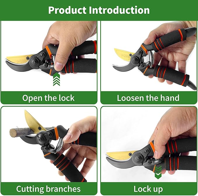 - 🌷8.5" Professional Premium SK5 Steel with Titanium Bypass Pruning Shears-Ultra-sharp And Durable,Ergonomically Designed,Versatility Pruners For Gardening,Safe And Easy To Handle