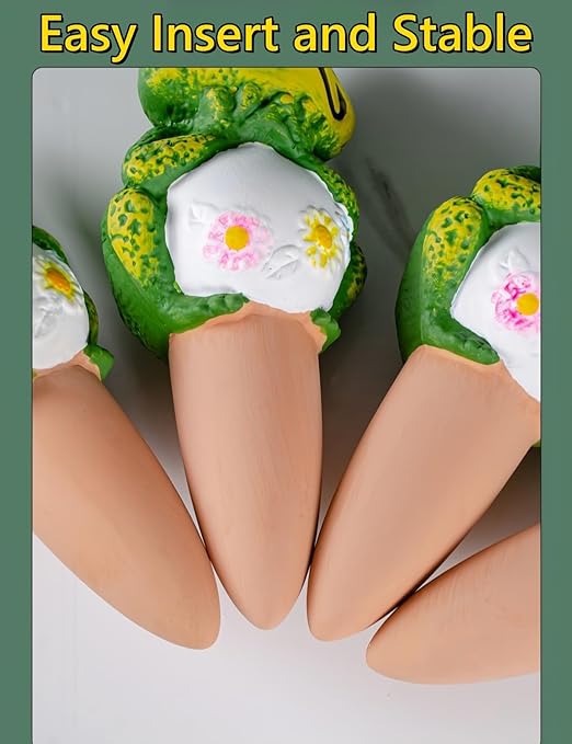 - 🐸Easy to Use: Simply soak the terracotta in water, insert self-watering spikes into the soil, and fill it up. The wide opening makes refilling easy, and the automatic plant waterer gradually releases water into the soil, keeping your plants perfectly moist without overwatering.