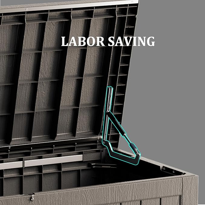 - Material: The patio outdoor storage box is made of the latest high-quality resin material, which makes this patio deck storage box waterproof, UV-resistant, anti-fading, and anti-bending protection, suitable for long-term outdoor use.
