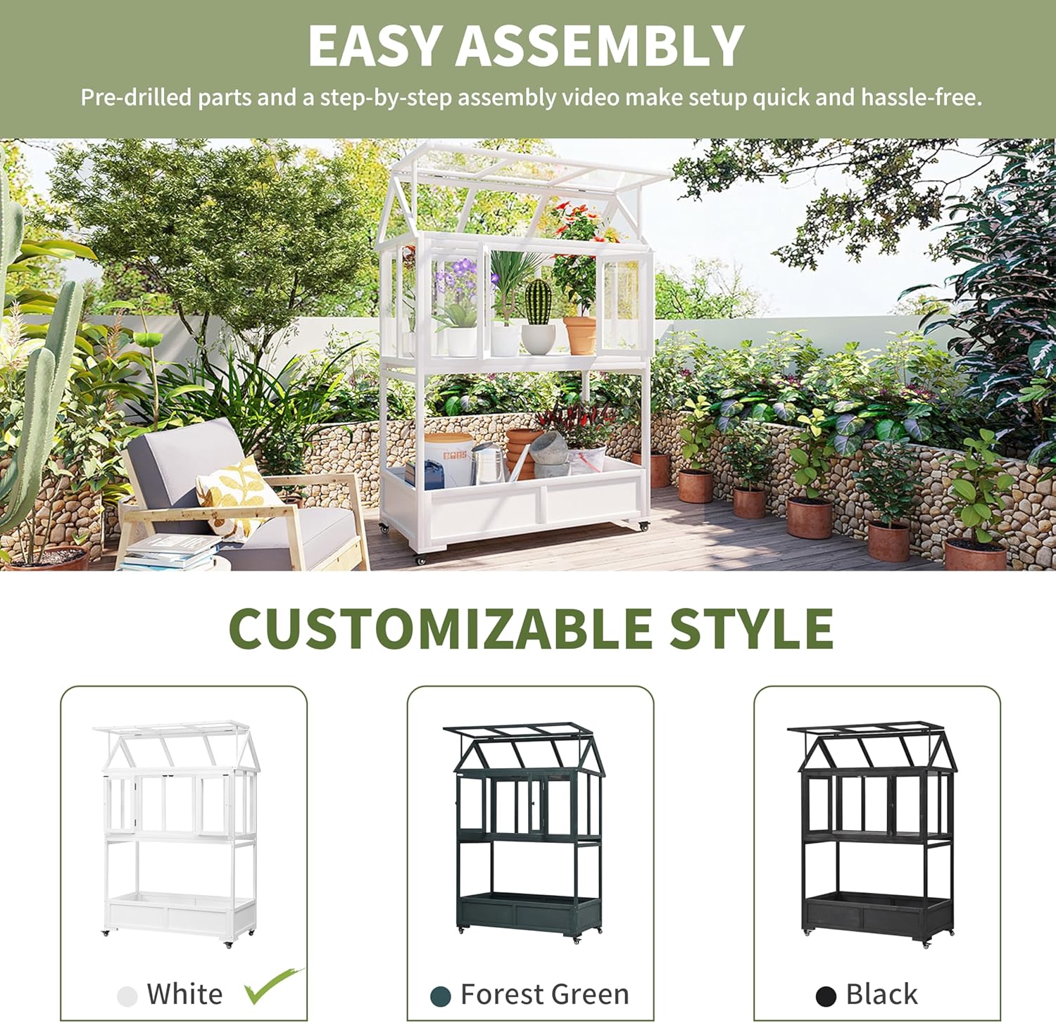 Greenhouse Cold Frames with Wheels - Adjustable Shelves Portable Cold Frame for Balcony/Patio, UV-Resistant Indoor Outdoor Plant Growing Cabinet (Large, Heavy-Duty) (White)