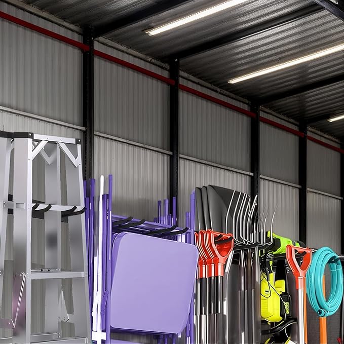 - Multi-Purpose Garage Wall Organizer -Not limited to folding chair, this heavy duty storage hooks can accommodate other items, such as garden tools, shovel, brooms, hoses, yard tool, etc. It can ensure that you are in a clean and tidy environment and improve your work efficiency.