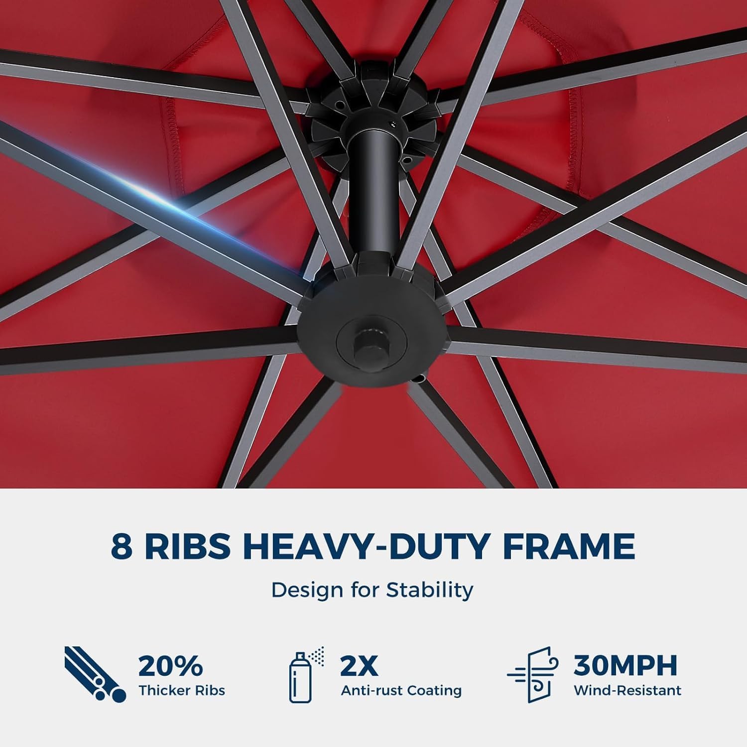 - 💪[Rock-Solid Frame] 20% thicker steel ribs (18x12mm) + 1.9" reinforced pole resist 30mph winds without shaking. Double powder-coated for rust-proof durability—no flimsy bending!