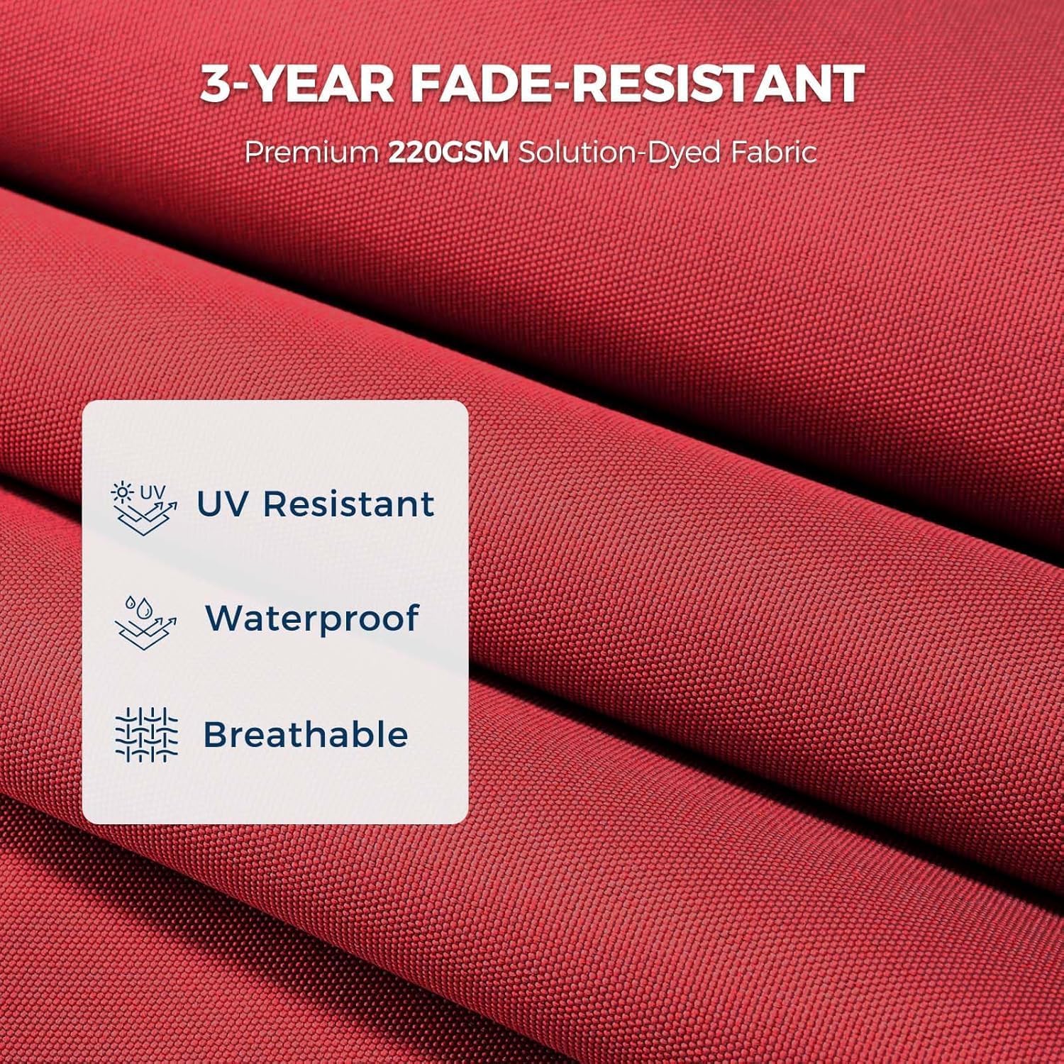 - 🏆[Luxury UPF50+ Sunblock Fabric] Made with premium 220gsm fade-proof fabric, our patio umbrella blocks 99% UV rays (UPF50+) and stays vibrant for 3+ years. Water-repellent & extra-wide 78.5 sq ft of shade for superior comfort!