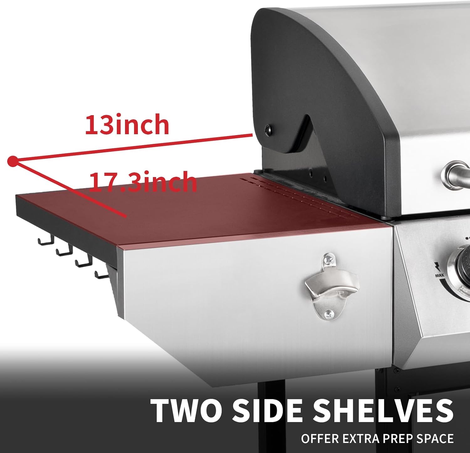 - 【Large Storage Cabinet】There is a bottom cabinet with this gas grill, aimed at providing large enough space for your all sorts of kitchen supplies, to help you keep a neat kitchen environment. And also for storage a propane tank.