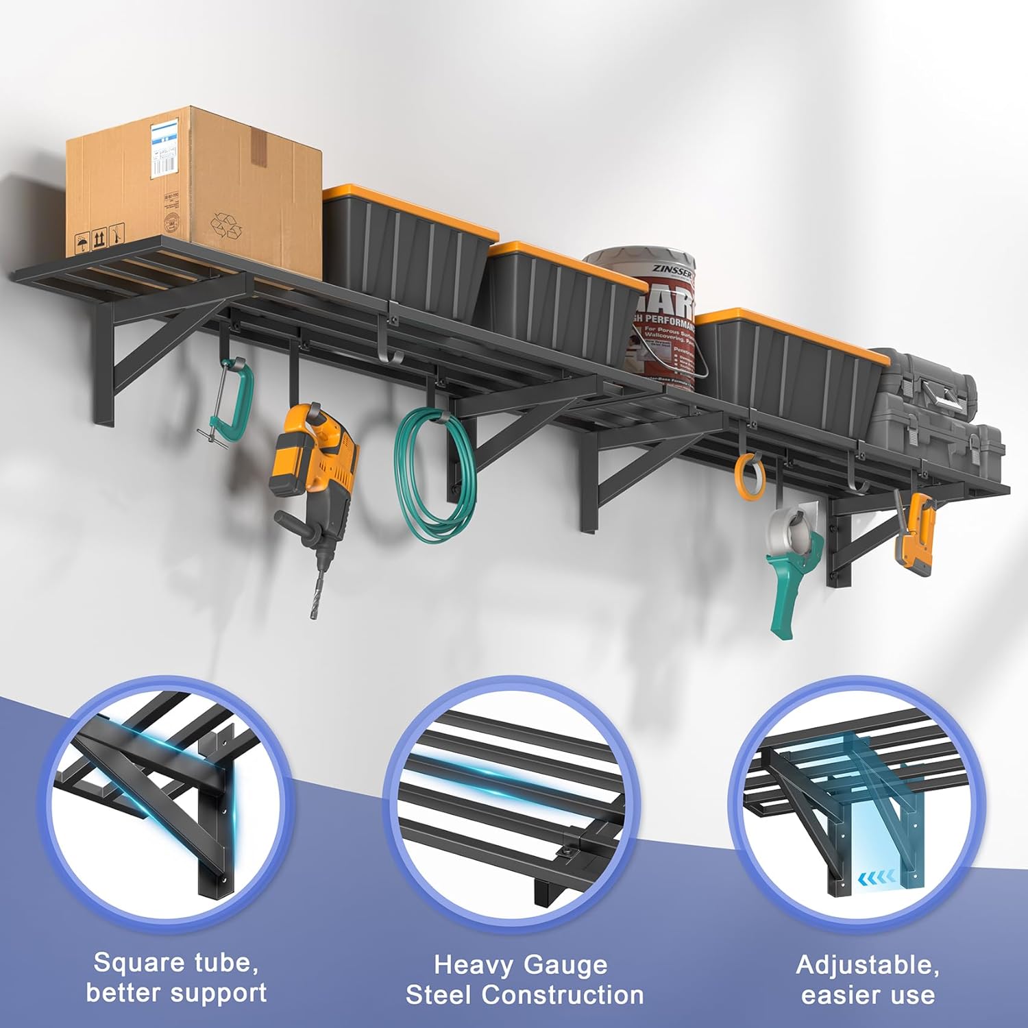 - PREMIUM STRENGTH & STABILITY: Engineered with heavy-duty steel, our wall shelf system features reinforced square tube supports, a seamless integrated frame, and secure U-hooks for superior durability. Every component undergoes rigorous quality testing to ensure maximum safety and long-lasting performance