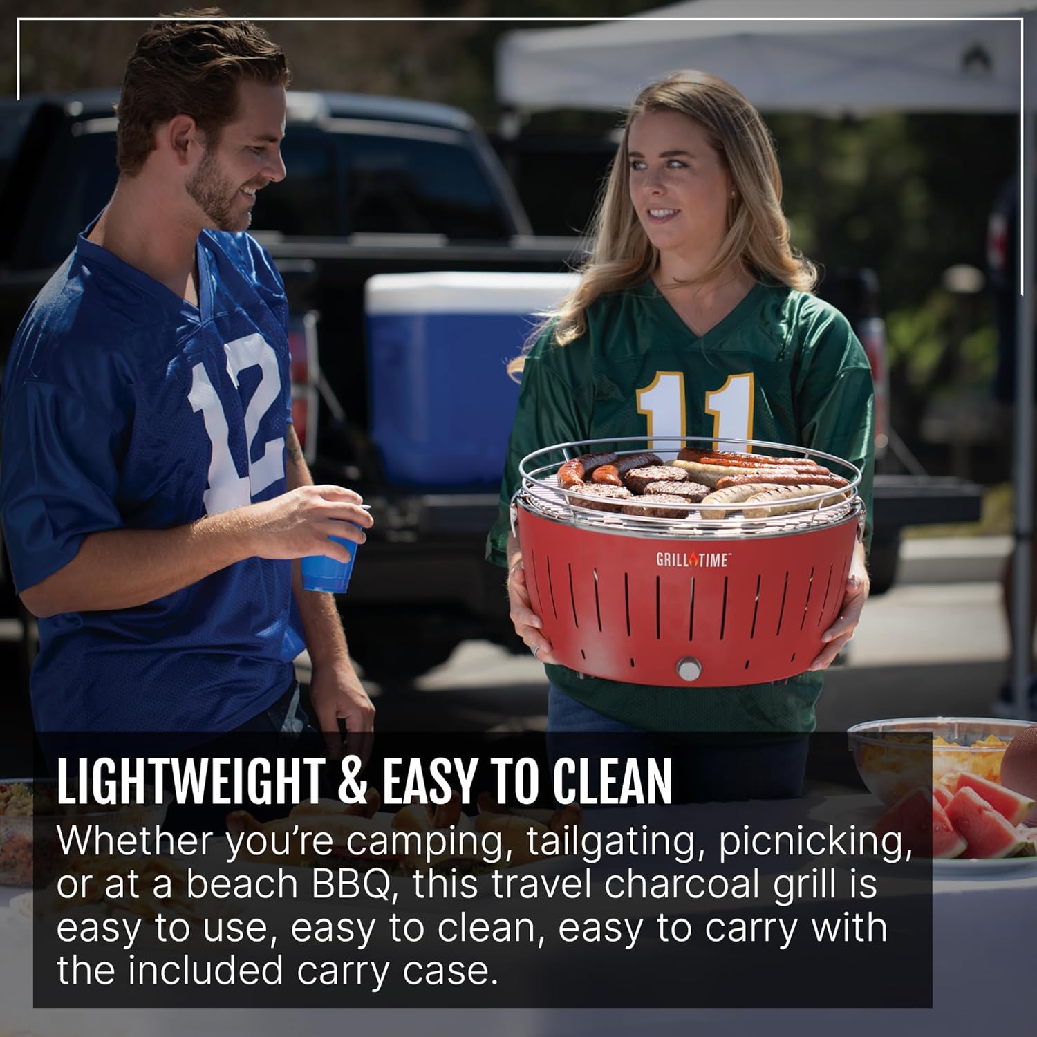 GrillTime Tailgater GTX Portable Charcoal Grill 16 Inch - Smokeless Tabletop Grill for Camping, Tailgate Parties, Beach BBQ, Travel - Blue