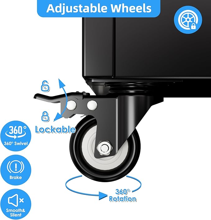- 【Easy to Move 】 The broom closet storage cabinet has four lockable wheels that can be rotated 360 degrees to provide adaptability and convenience. You can easily move it anywhere you want without worrying about being out of control. (adjust up to move, adjust down to lock)