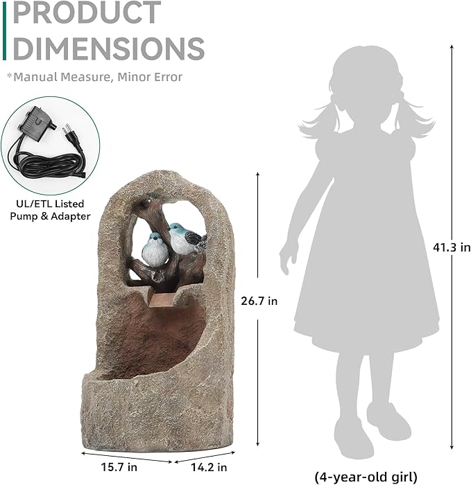 - Easy for Use: Equipped with an upgraded ETL/UL-Listed pump, 6ft standard power cord, easy to blend with any outdoor setting, just add water, plug-in and enjoy!