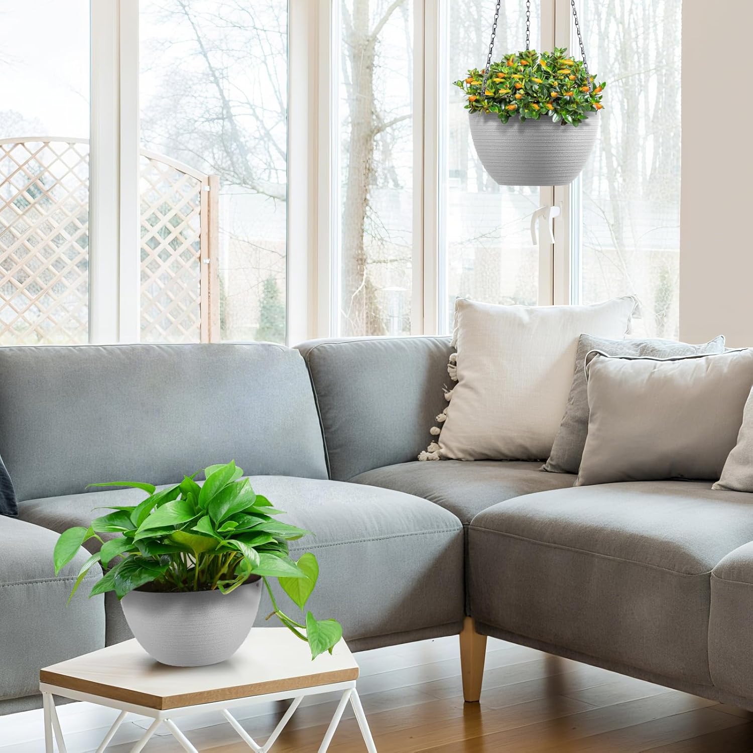 Hanging Planters for Indoor Outdoor Plants, Set of 2 Self Watering Hanging Pots with Drainage Hole & Plug and 20" Chain & Hooks
