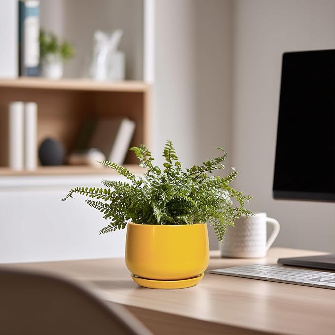 G EPGardening 4 Inch Ceramic Planter - Succulent Pots for Plants Indoor Outdoor, Small Plant Pots with Drainage Hole & Saucer, Round Planter, Modern Flower Pot, Home Decor, Plant Lover Gift, Yellow