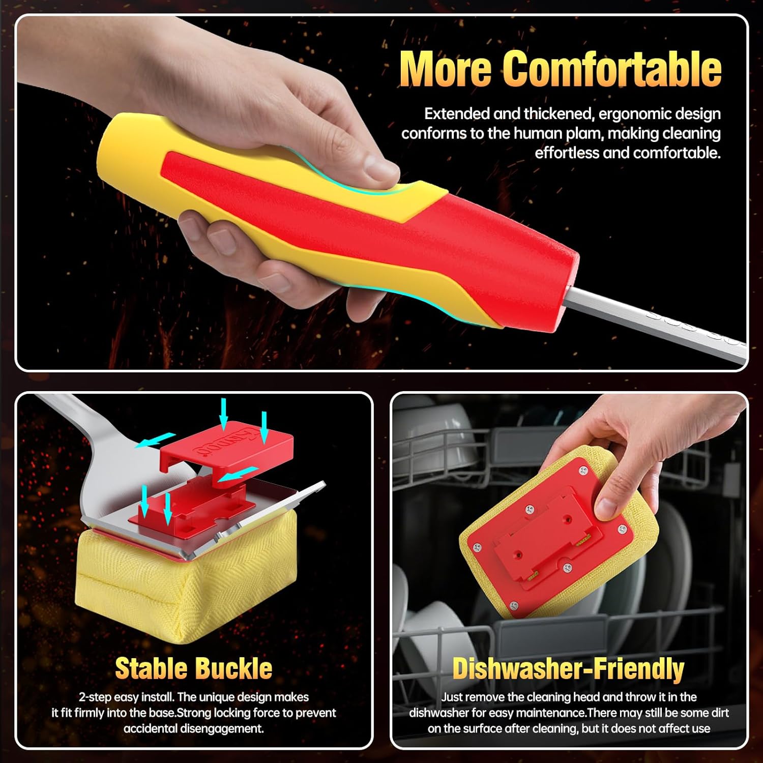 - 【Heat Resistance & Stronger Friction】The BBQ grill cleaner brush head fabric is made of high-quality Aramid for excellent abrasion resistance and superb heat resistance.The unique design of the Herringbone pattern provides stronger friction.This is the ideal barbecue brush tool designed to remove stubborn, sticky grill residue, ensuring efficient and thorough cleaning every time