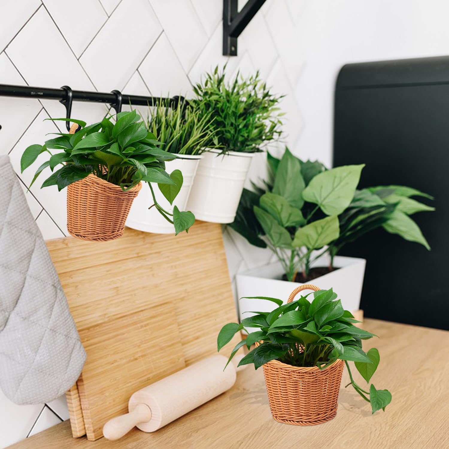 - 【Durable Construction: 】Made from high-quality plastic, these Plastic Woven Wall Hanging Basket mimic the look of wicker but offer superior durability and resistance to moisture and deformation.