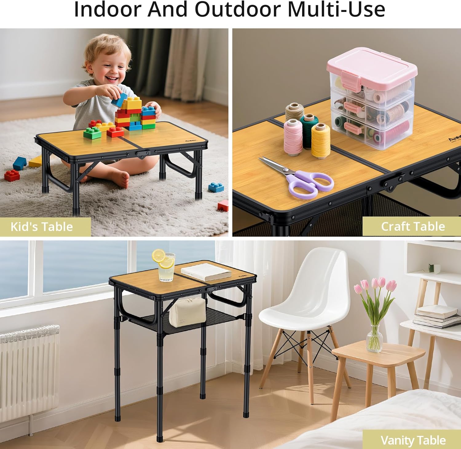 - Multifunctional Table for Various Occasions: This small portable table is perfect for outdoor and indoor use. It can be used as BBQ grill side table, picnic table, card games table, serving table for dining, working and study table for adult and kids, fishing table
