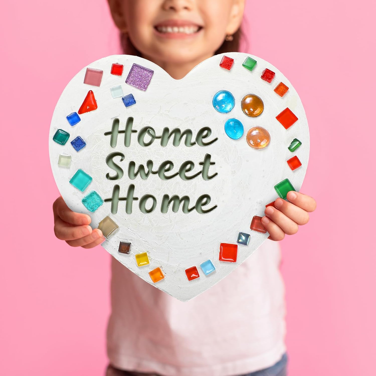 - Comprehensive Set: create a vibrant stepping stone masterpiece with our complete DIY craft; It includes 20 heart stepping stone molds, 250g of mosaic tiles, and 3 carving tools, nice for crafting memorable garden decor(no concrete mix)