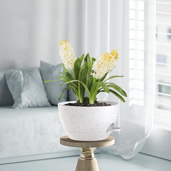 - 【Ventilation & Drainage】12-Inch self-watering hanging planter has multiple drainage holes between the planter and the tray, which can effectively drain and ventilate the plant. It can drain excess water and prevent overwatering, which is beneficial to promote the respiration of plants